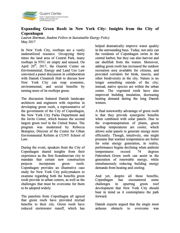 In a series of publications, the Guarini Center has examined the potential for green roofs in cities, both in New York City and in other cities around the world.