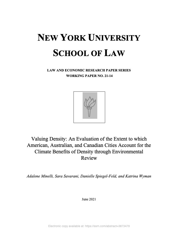In this study, we survey the legal and policy frameworks governing environmental review in American, Australian, and Canadian cities to determine the extent to which these cities consider and analyze the GHG benefits of land use changes that increase urban residential density.